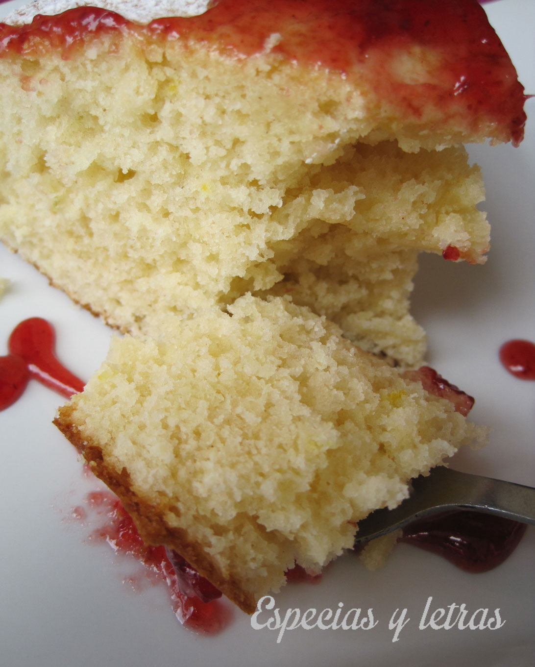 En un bol mezclamos el queso, los quesitos, la leche y el azúcar. Añadimos las yemas de huevo de una en una, mezclando bien antes de añadir la siguiente. Echamos la harina que tendremos tamizada, mezclada con la levadura y la ralladura de limón. Montamos las claras de huevo apunto de nieve y las añadimos a la mezcla del queso, mezclándolas con movimientos envolventes hasta conseguir una mezcla homogénea. Vertemos en un molde que tendremos enharinado y horneamos a 180º unos 25 minutos aproximadamente. Retiramos del horno dejamos enfriar, espolvoreamos con el azúcar glase y vertemos la mermelada un poco tibia.