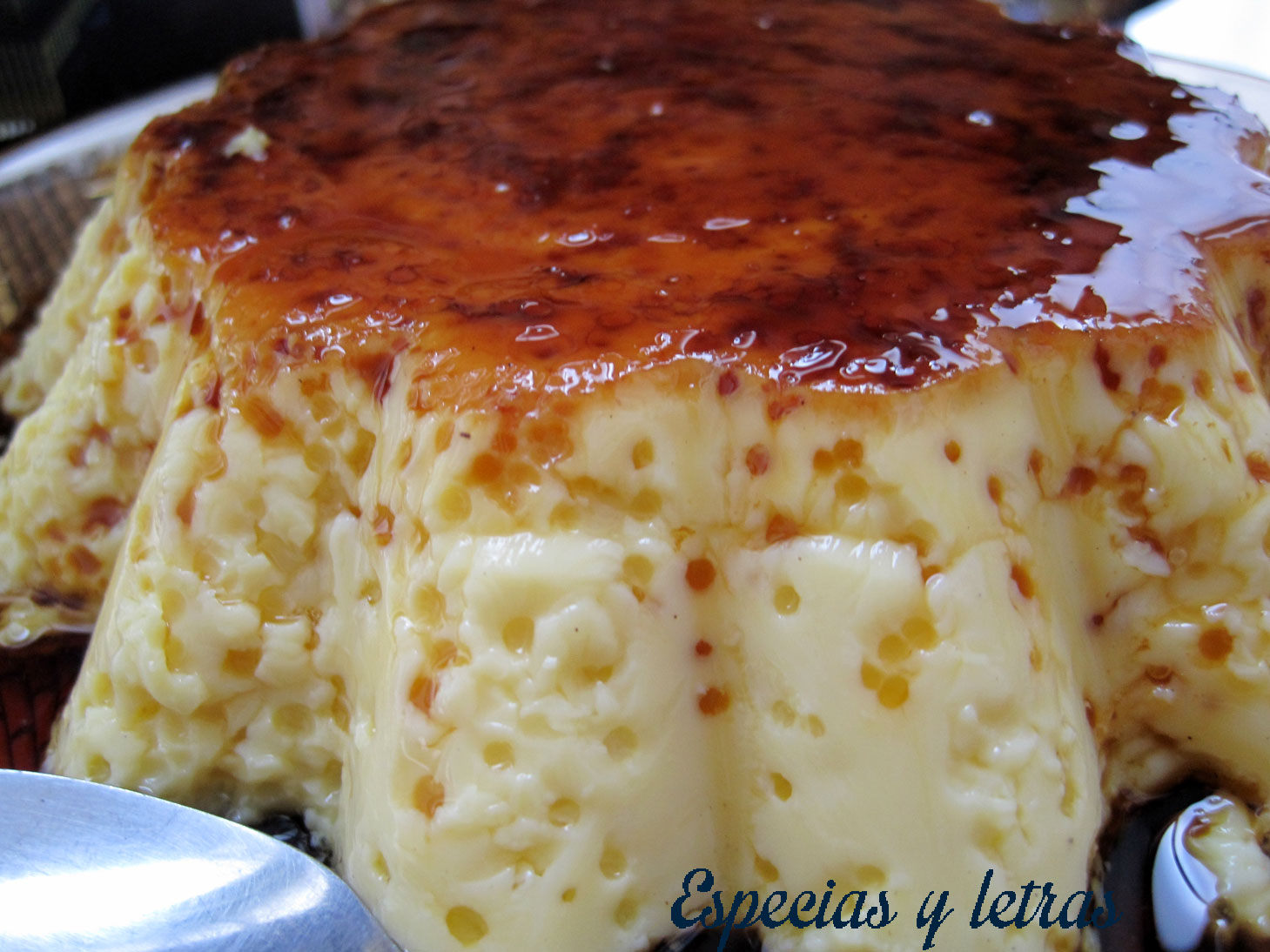 Si no tenemos el caramelo hay que hacerlo: Ponemos unos 150 g de azúcar y 4 cucharadas de agua en un cazo y dejamos cocer hasta que tome color doradito.
