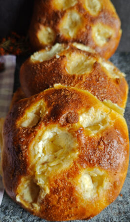 Colocamos los discos en una bandeja de horno forrada con papel sulfurizado. Pincelamos con el huevo, dejamos que leven durante una hora y media.